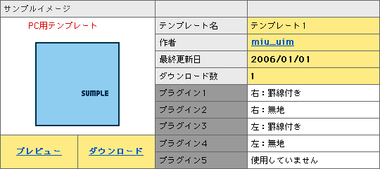 もう一つはテンプレートのダウンロードページに、プラグインの説明が付けられるといいんじゃないかなーと。